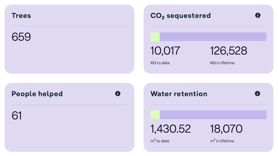 Seit Anfang 2023 ist TreebyTree dabei unser Partner und unterstützt uns dabei, der Natur mit jedem abgeschlossen Auftrag etwas zurückzugeben. Und das ganze komplett kostenlos für Sie - je Auftrag werden von uns durch Ihren Umsatz automatisch 2 Bäume und je angefangene 500,- netto ein weiterer Baum gepflanzt.